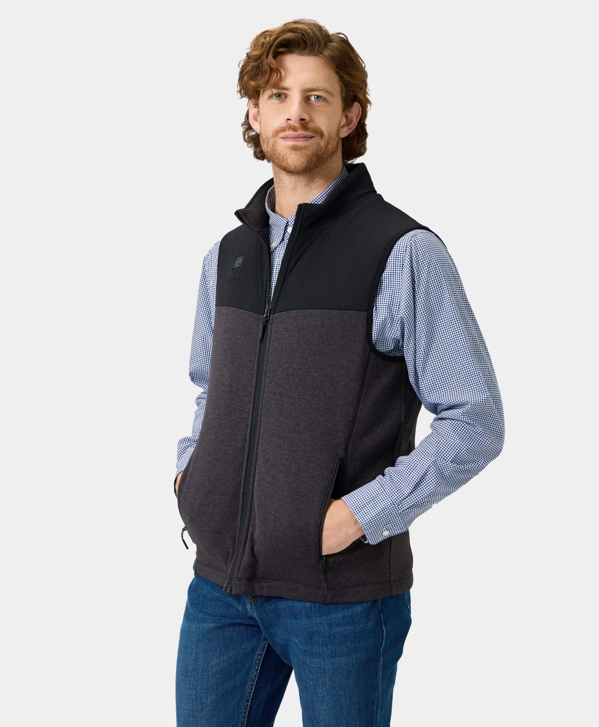 The power button is discreetly placed on the lower left hem of the vest, allowing easy access while maintaining the sleek design.