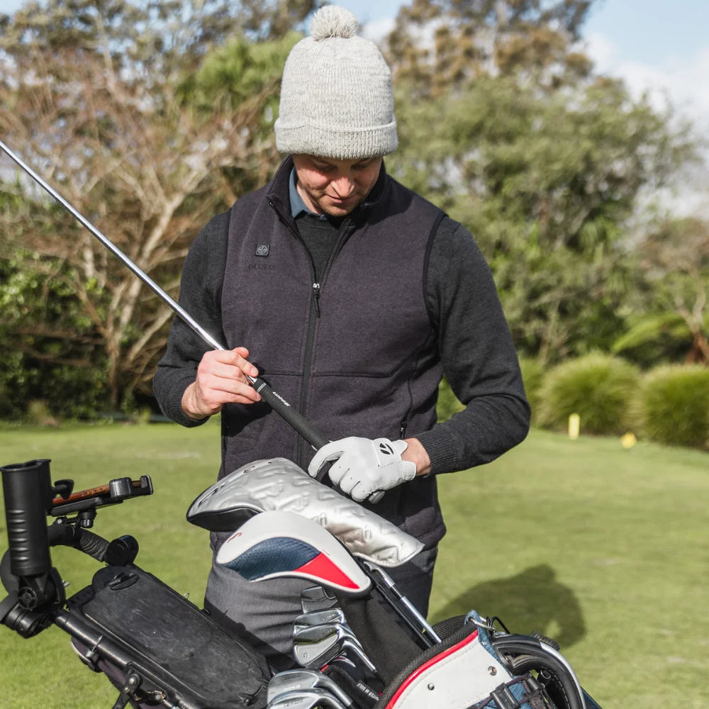 - Four strategically placed heating zones warm the hands (core), back, and collar, keeping you toasty for the perfect swing.