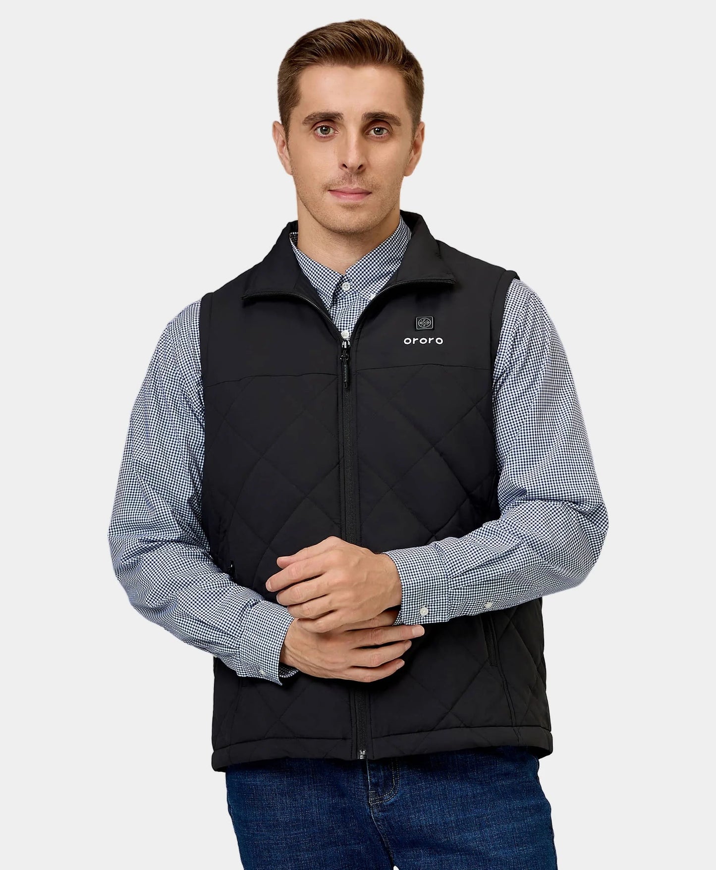 - The quilted vest weighs only 14.4oz/410g (size L), 19% lighter and 50% thinner than the Classic Heated Vest, making it the lightest vest we offer.