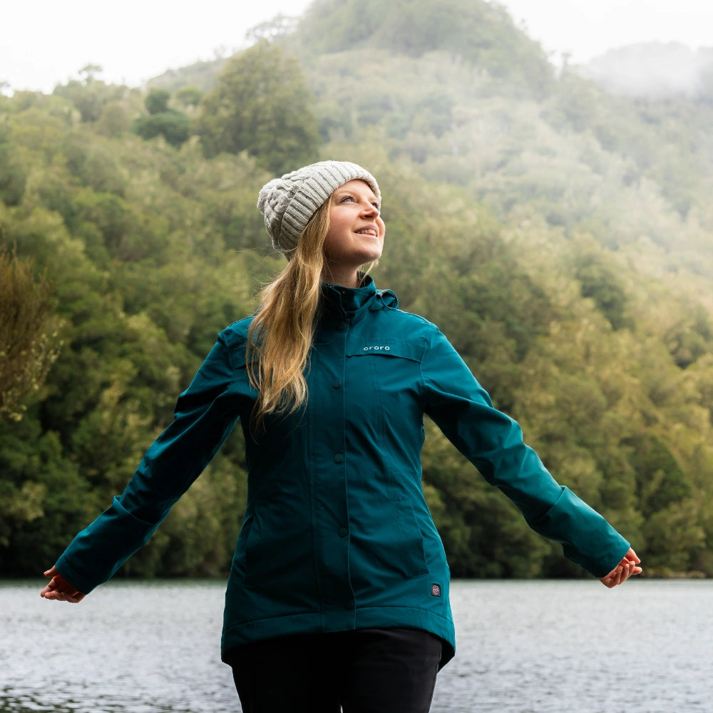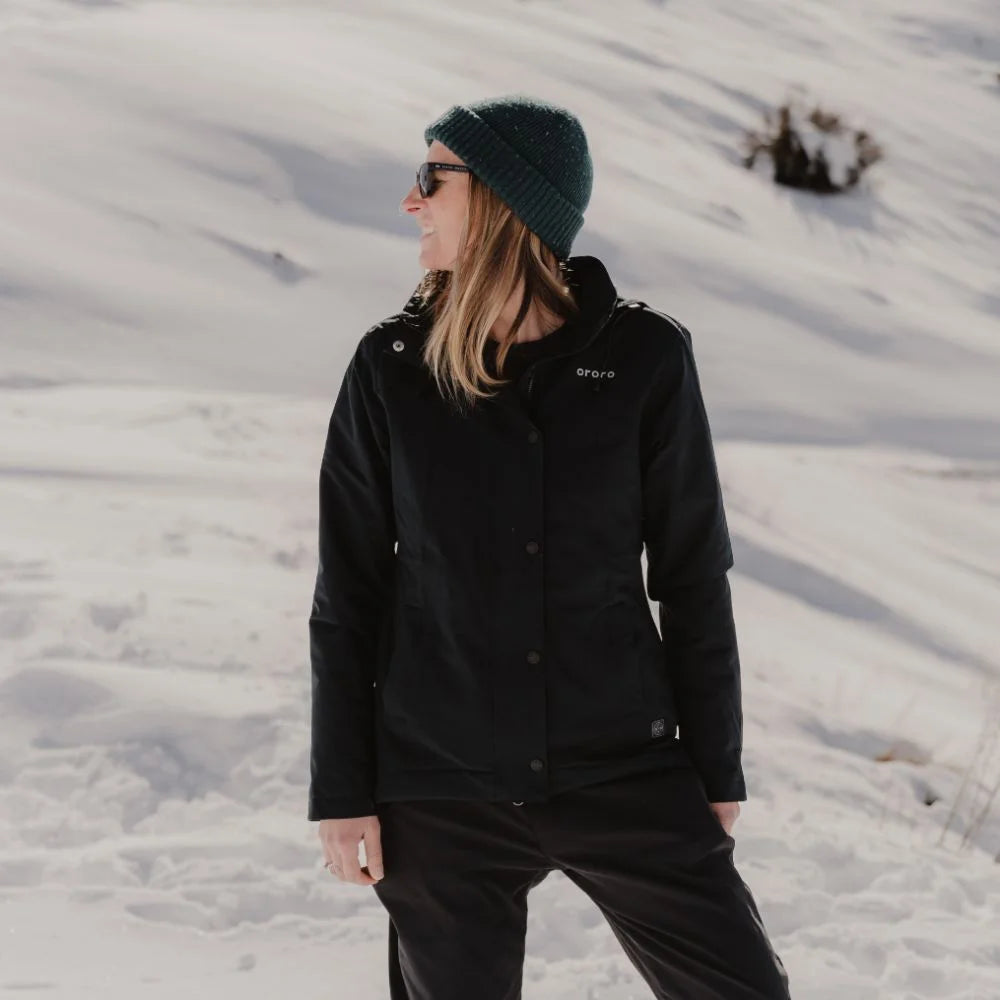 The ororo Women's Heated Sports Jacket handles rain exceptionally well. It features fully taped seams and a waterproof shell rated at 10,000 mmH₂O, ensuring that you stay completely dry by preventing water from seeping through. -