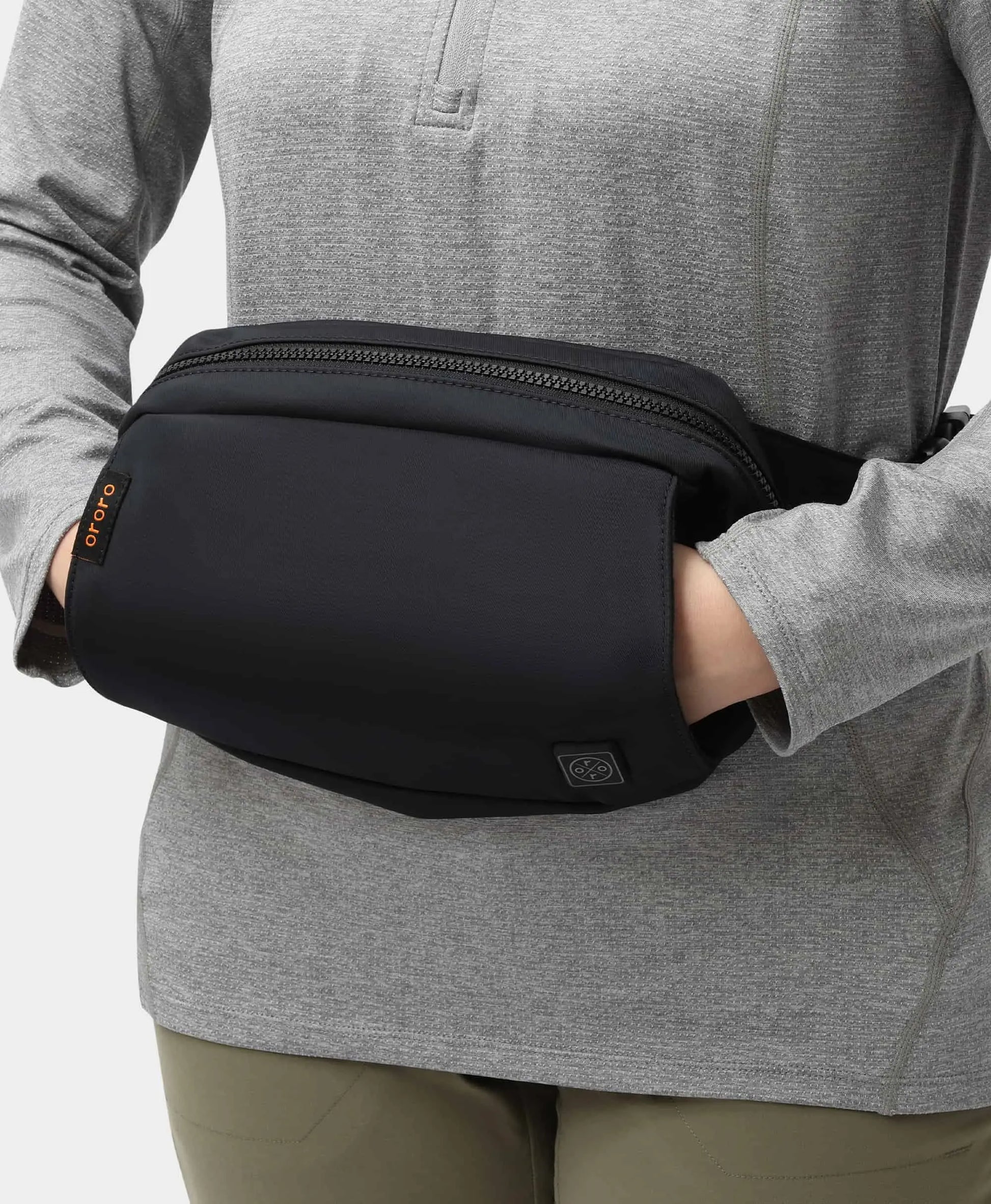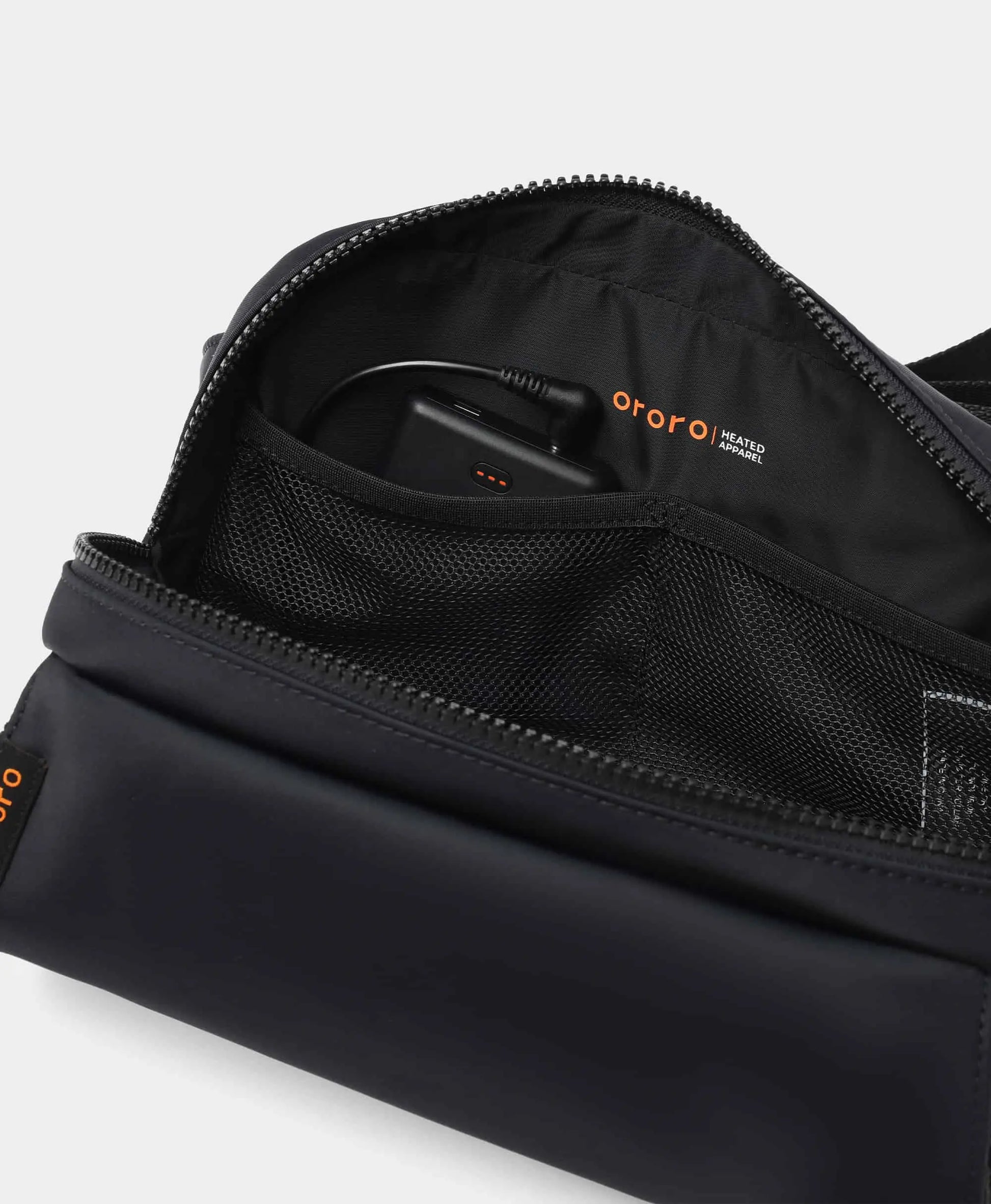 - The 2.5L heated sling bag features a functional multicompartmental design and minimalist aesthetic for all-season, daily use.