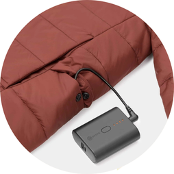 - 4 carbon-fiber heating zones located at the left and right pockets, upper and lower back that deliver even heat distribution for all-day comfort.