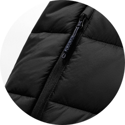 - Lightweight, quilted construction with two zippered hand pockets and one internal battery pocket