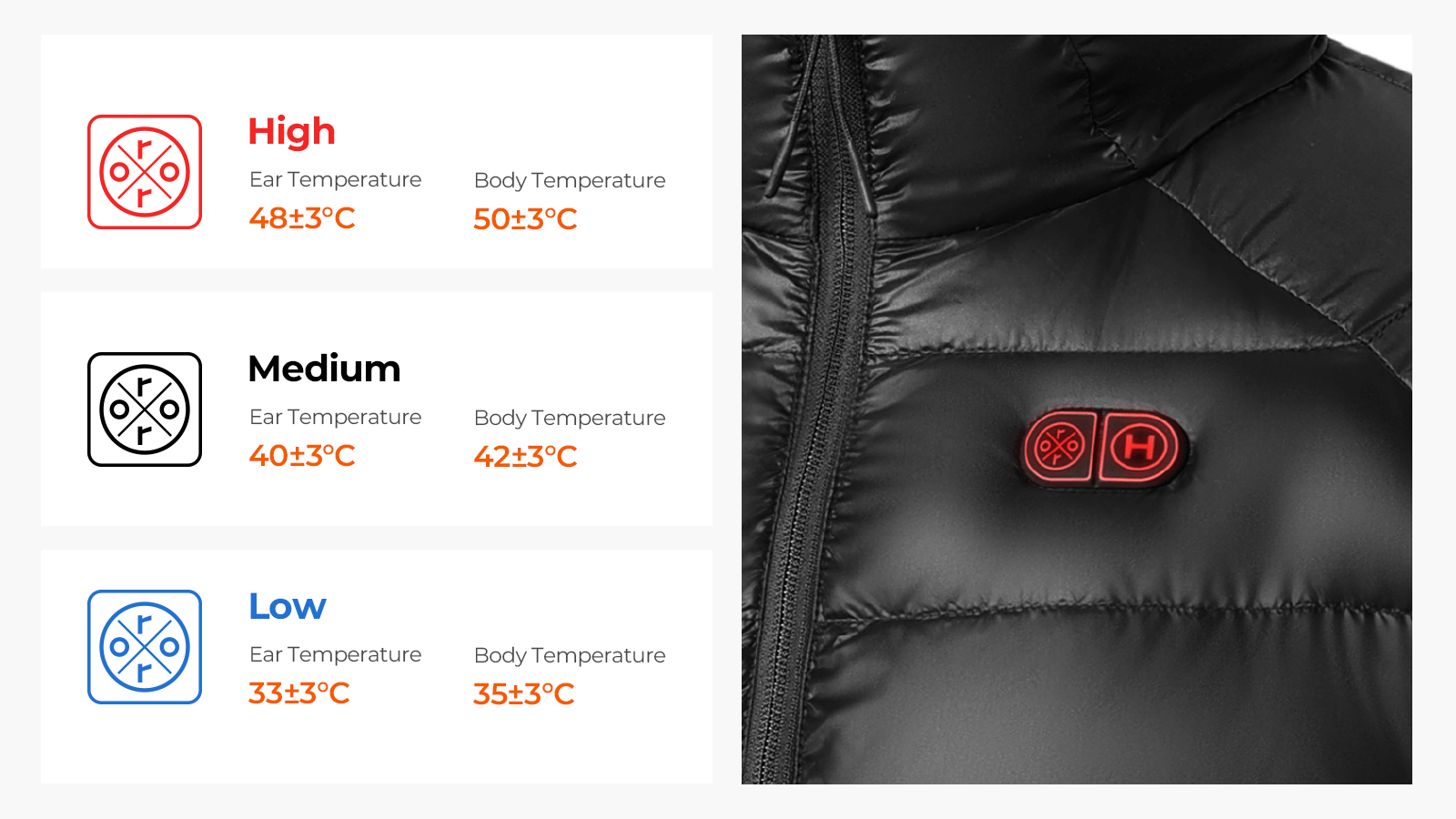 | "ORORO" button (L&R Pockets, L&R Arm, Upper back, Mid-Back) | 3.5 | 5.5 | 9 |