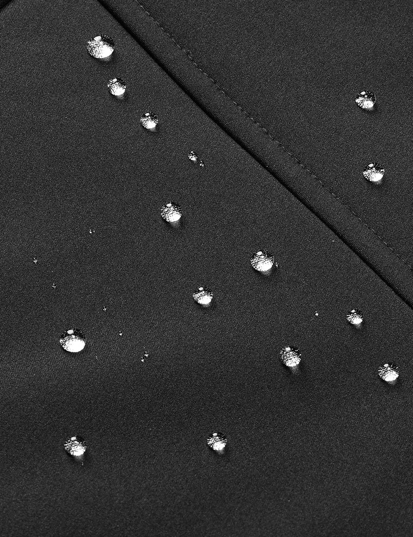 - Three-piece removable hood with adjustable drawstrings block rain and wind.