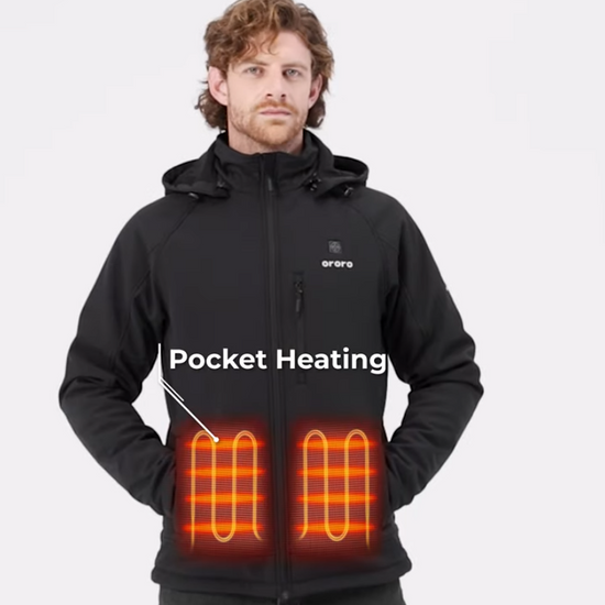 - Four heating zones: left & right hand pockets, collar, and mid back