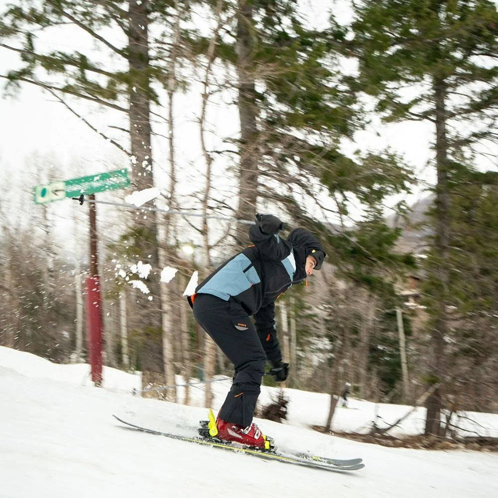 - Mesh-lined pit zips provide easy airflow to regulate body temperature during intense skiing.