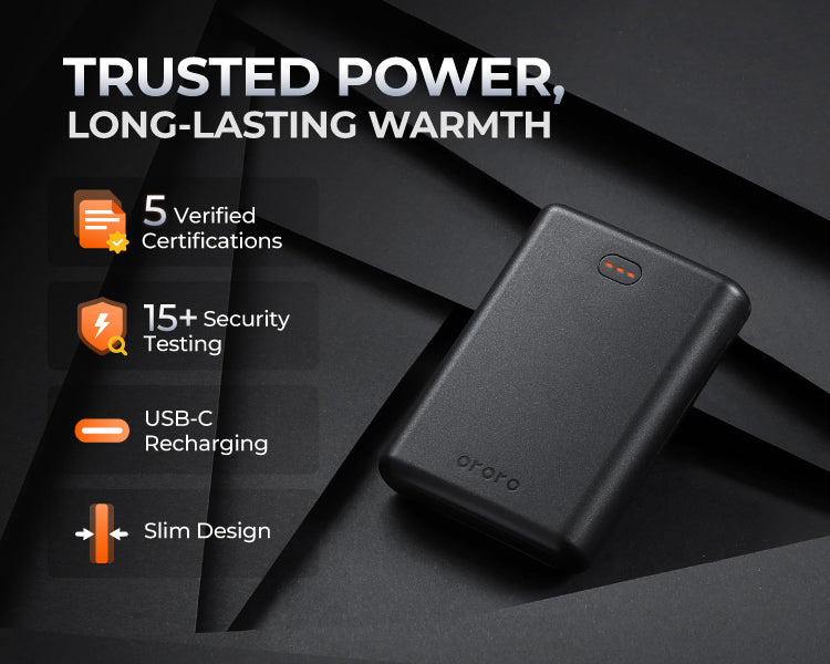 Get up to 11 hours of continuous heat, and with quick USB-C charging, you’ll be back to warm toes in just 3 hours.