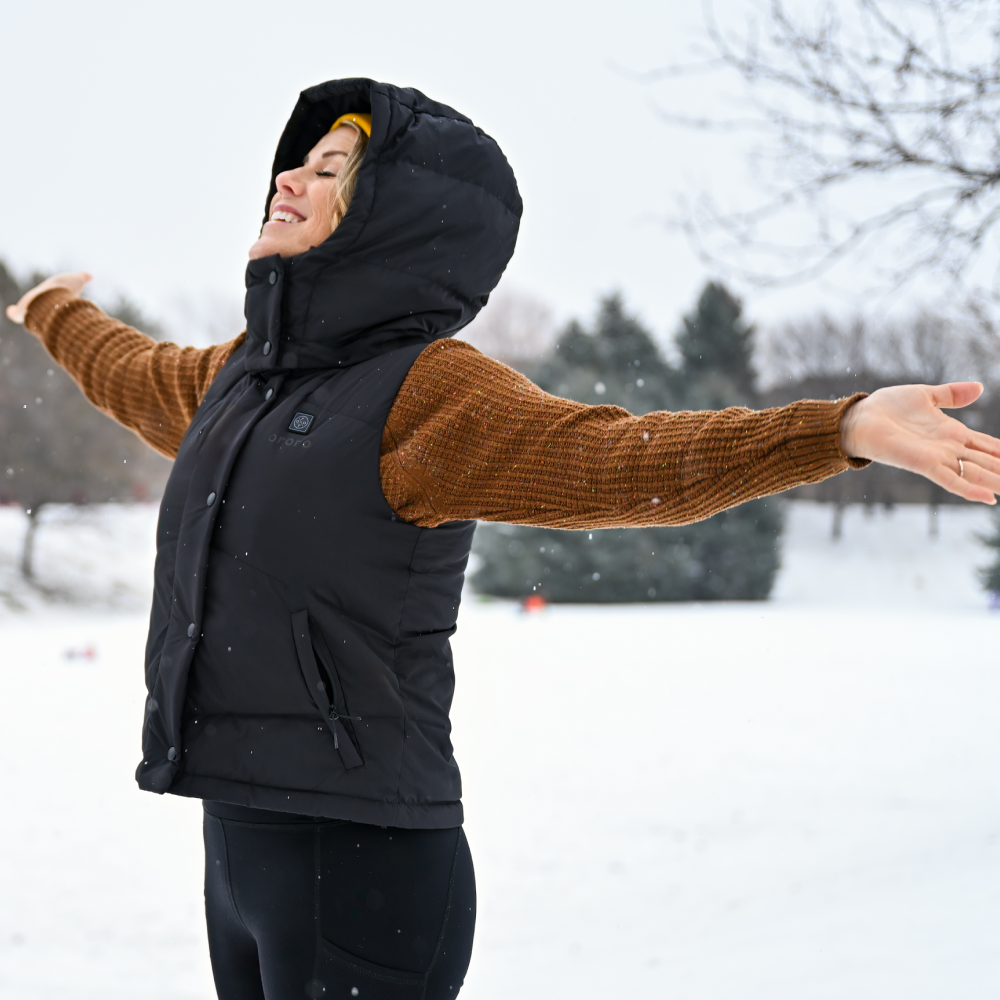 Women's Heated Cropped Puffer Down Vest - Black / Red
