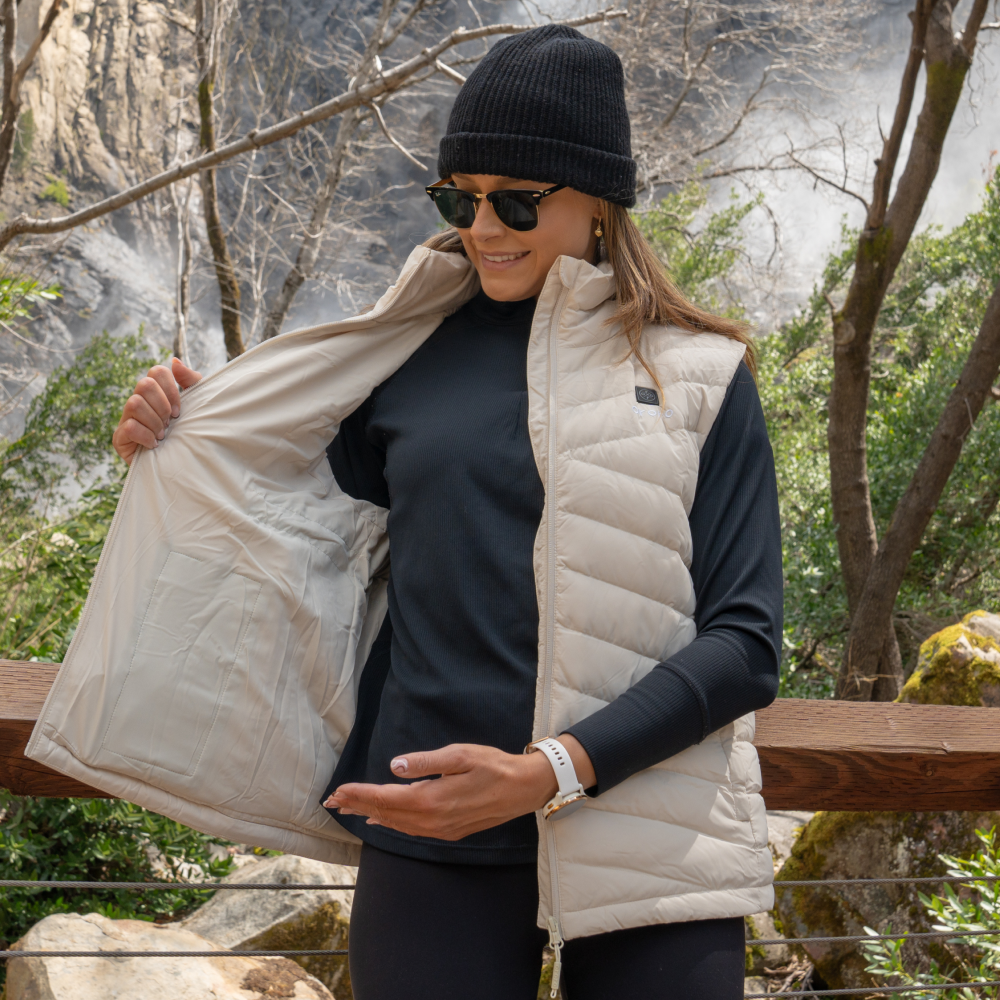 - The 800 fill power RDS (Responsible Down Standard) certified down has excellent warmth-to-weight ratio and is also the most lightweight heated down vest in the market. It’s perfect for either wearing alone or layering with your outer jacket.